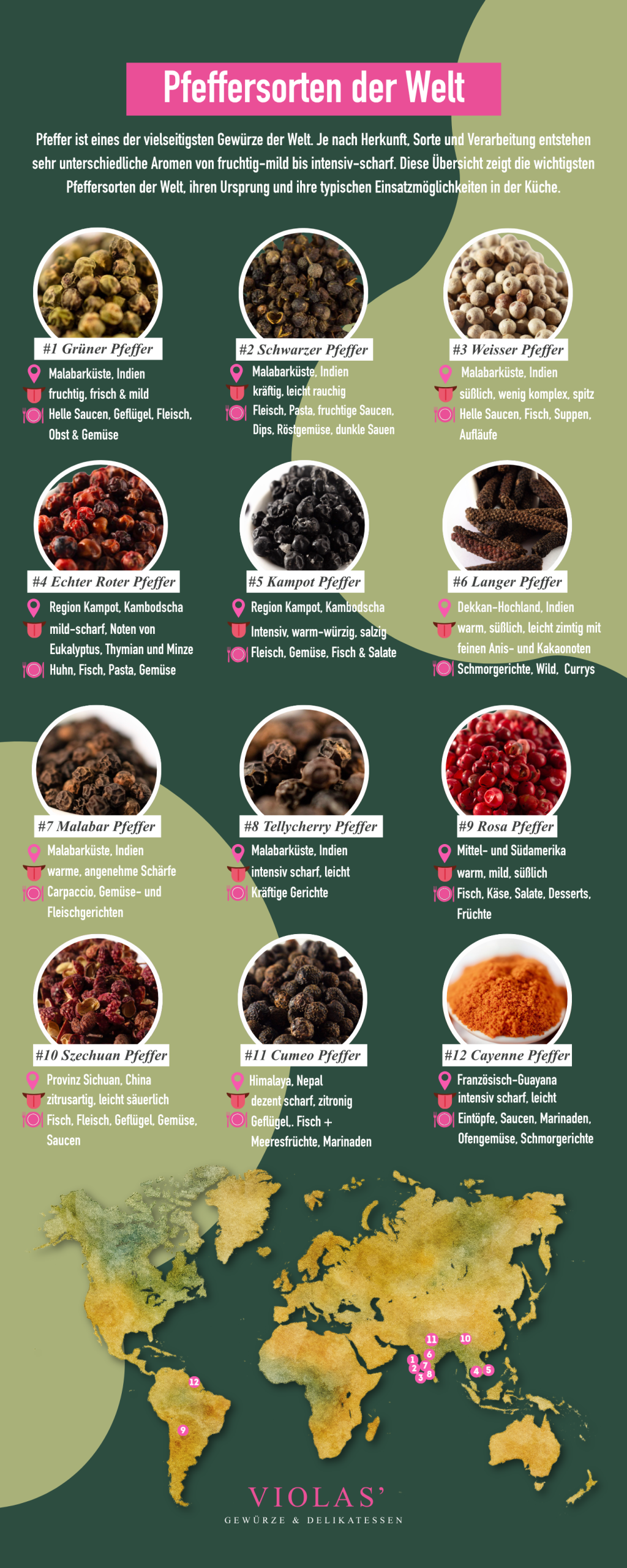 Infografik: Pfeffersorten der Welt – Farben, Herkunft & Aromen