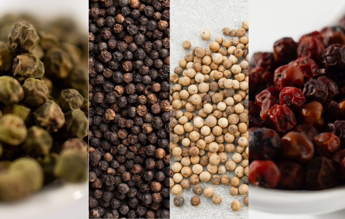 Alle „echten“ Pfefferfarben gehen auf dieselbe Pflanze zurück – die Unterschiede liegen in Erntezeitpunkt und Verarbeitung.
