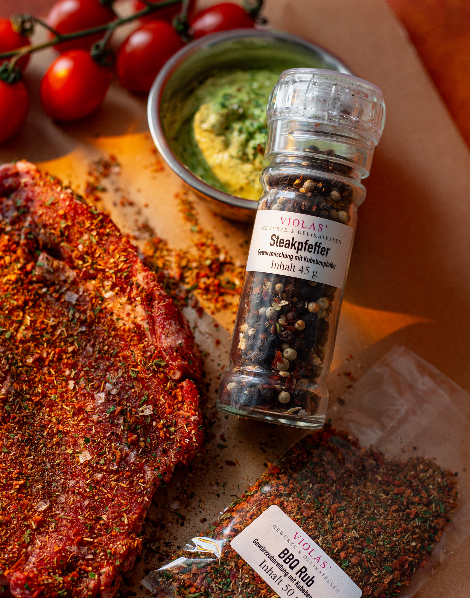 Ein gutes Steak muss nicht kompliziert sein. Mit dem richtigen Cut, etwas Ruhezeit und VIOLAS’ »BBQ Rub« gelingt ein saftiges Steak mit kräftiger Würze und aromatischer Kruste – perfekt für Grillpfanne oder Grill.