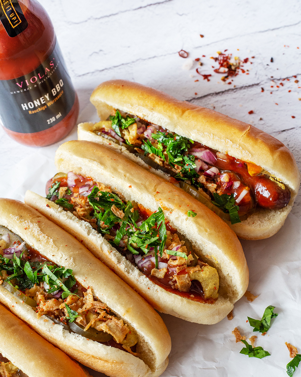 Wir starten heute mit einem bei Groß und Klein allseits beliebten Klassiker: dem Hotdog. Dank inzwischen vegetarischem Fleisch-Ersatz müssen zum Glück auch Veganer und Vegetarier nicht mehr auf das kulinarische Vergnügen verzichten.
