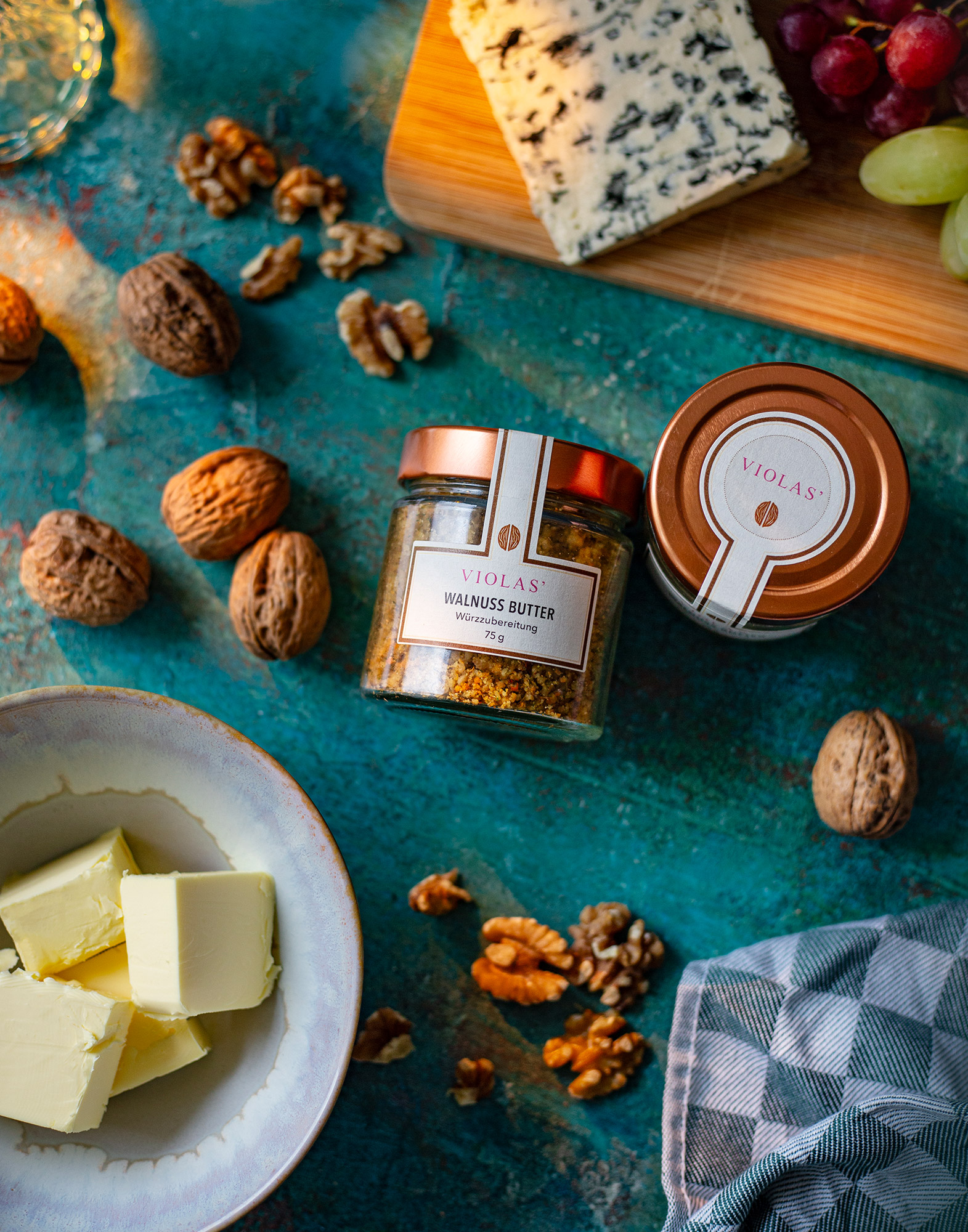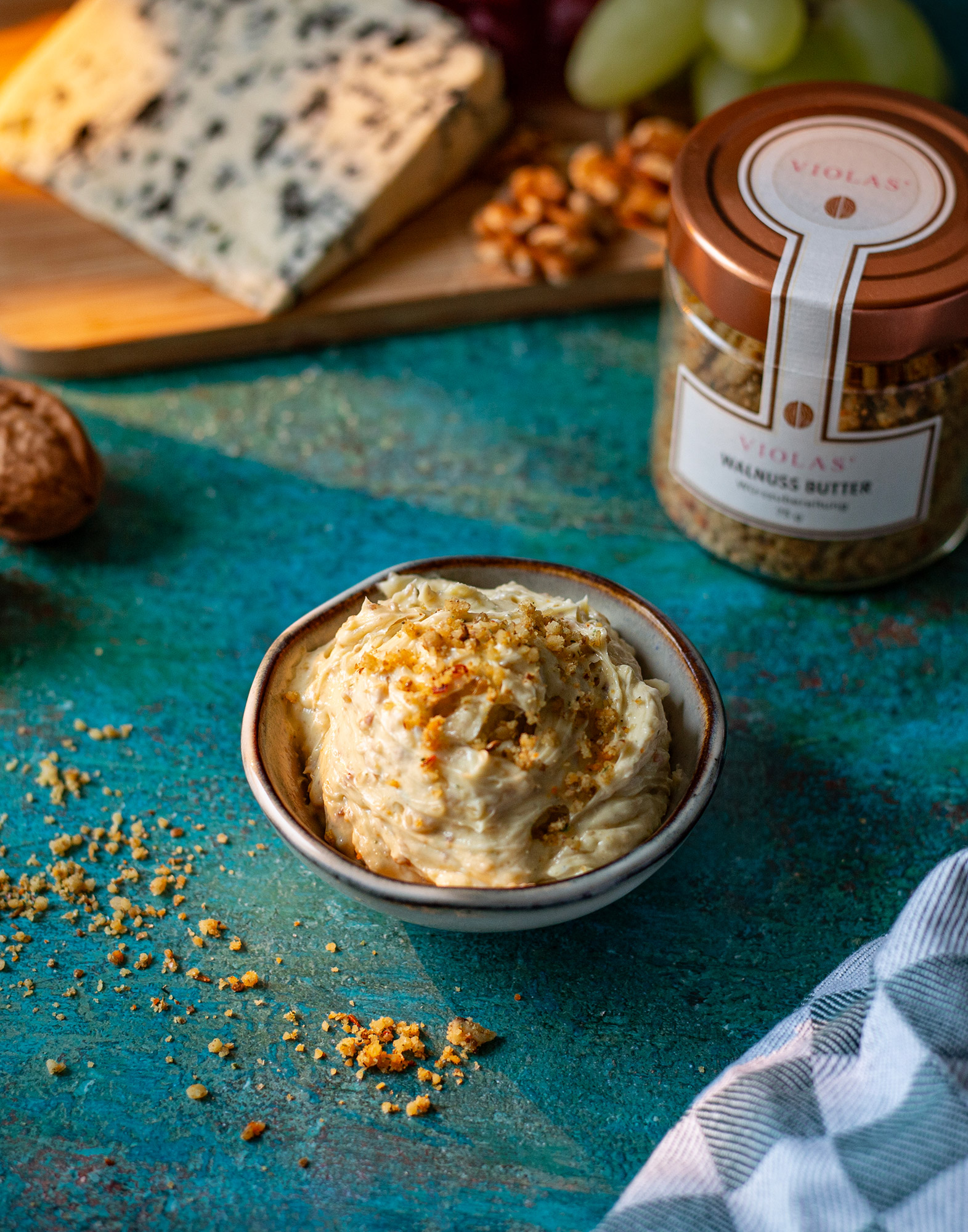 Wenn Sie die VIOLAS’ »Pistazien Butter« lieben, sollten Sie unbedingt die neue »Walnuss Butter« probieren. Ihr aromatischer Geschmack macht sie zum perfekten Begleiter für viele Gelegenheiten – ob pur auf frischem Brot, geschmolzen auf ofenwarmem Baguette oder als feines Topping zu Gemüse, Pasta oder Gnocchi. Die Zubereitung ist denkbar einfach: nur mit weicher Butter verrühren, ziehen lassen, nach Belieben würzen – fertig. Für noch mehr Geschmack empfiehlt sich die Verwendung von gesalzener Butter. Diese festliche Spezialität passt ideal zum 5-Minuten-Brot oder als raffinierter Akzent im Menü.